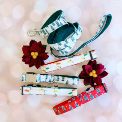 Light up your life this holiday season with this lovely Christmas Light patterned Dog collar with Rifle Paper Co fabric. This gorgeous print has metallic gold accents that are sure to bring you joy and pairs great with a gold buckle.