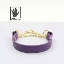 Our waterproof martingale dog collar is strong, stylish and handcrafted with love in our studios in Albuquerque, New Mexico. A part of our coated webbing collection, the limited slip martingale is a perfect combination, both classic and durable. Paired with either solid brass or stainless steel hardware and made to order, this is a martingale that is made to last.